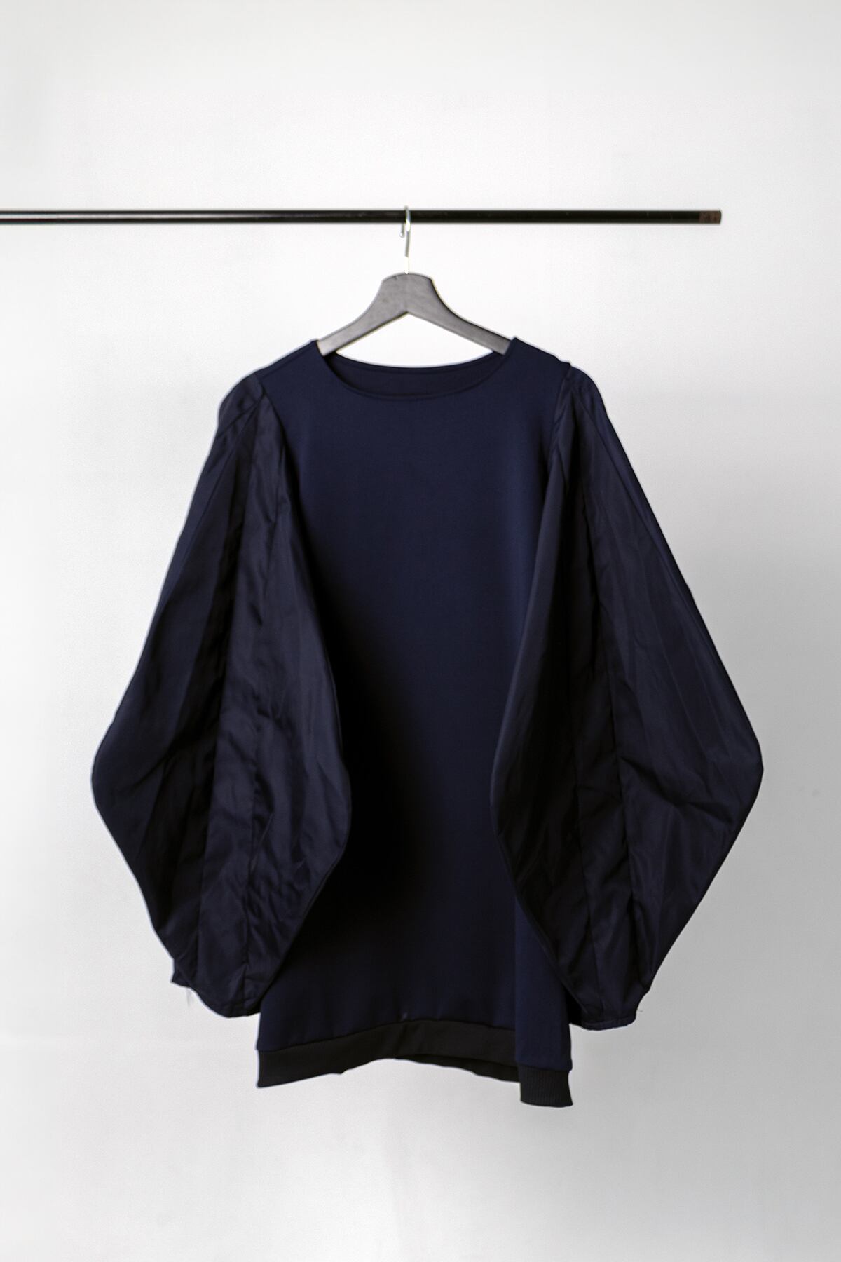 いくつもの線が重なり合った複雑なパターンメーキングから万華鏡スリーブと名付け、個性的なデザインとナイロンが混紡された身頃による着心地の良さも持ち合わせています。