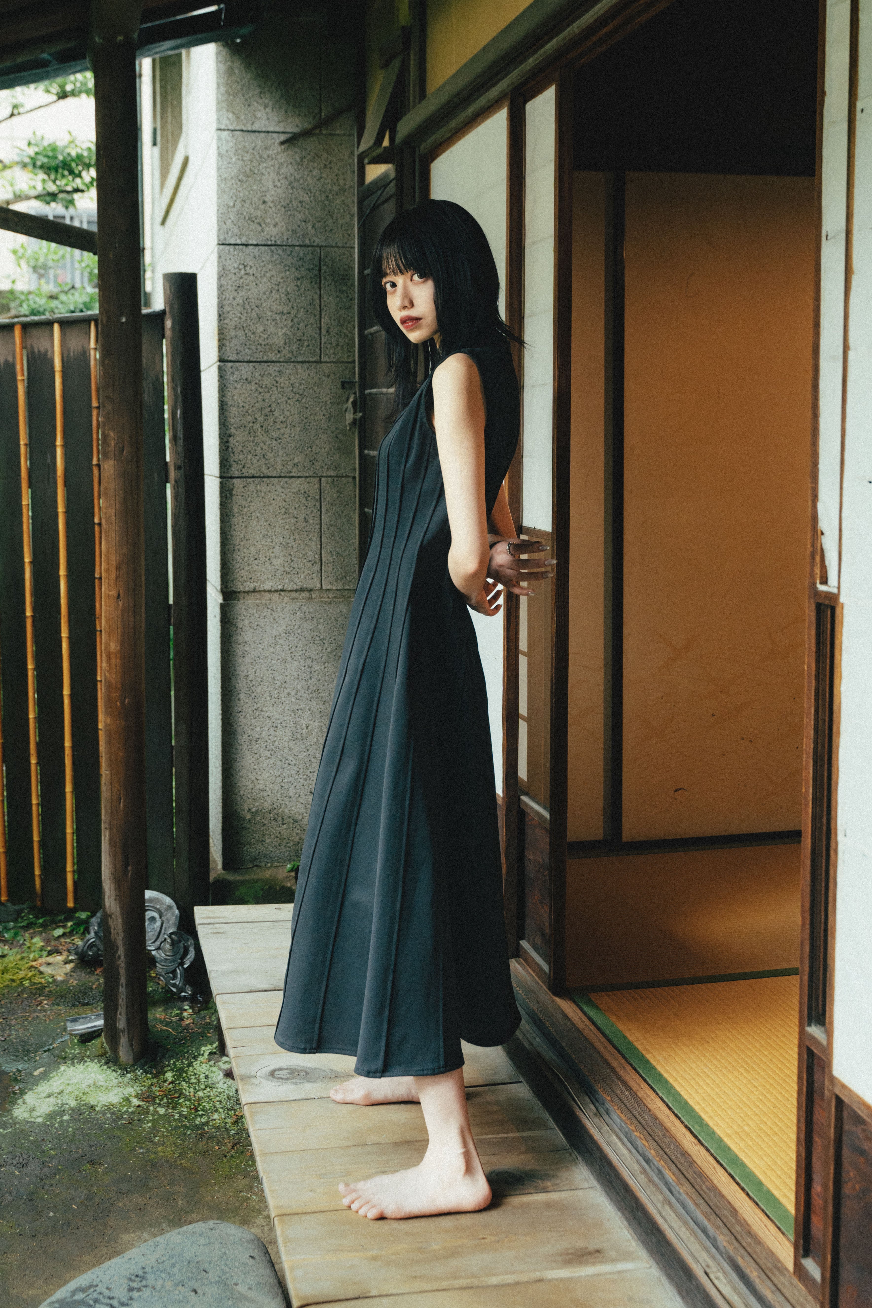 プリーツのように見えるけれど、触れるとプリーツではない「フェイクプリーツ」というディティールに拘り、フォーマルに印象が偏りやすいワンピースを縫い目でカジュアルに表現しました。