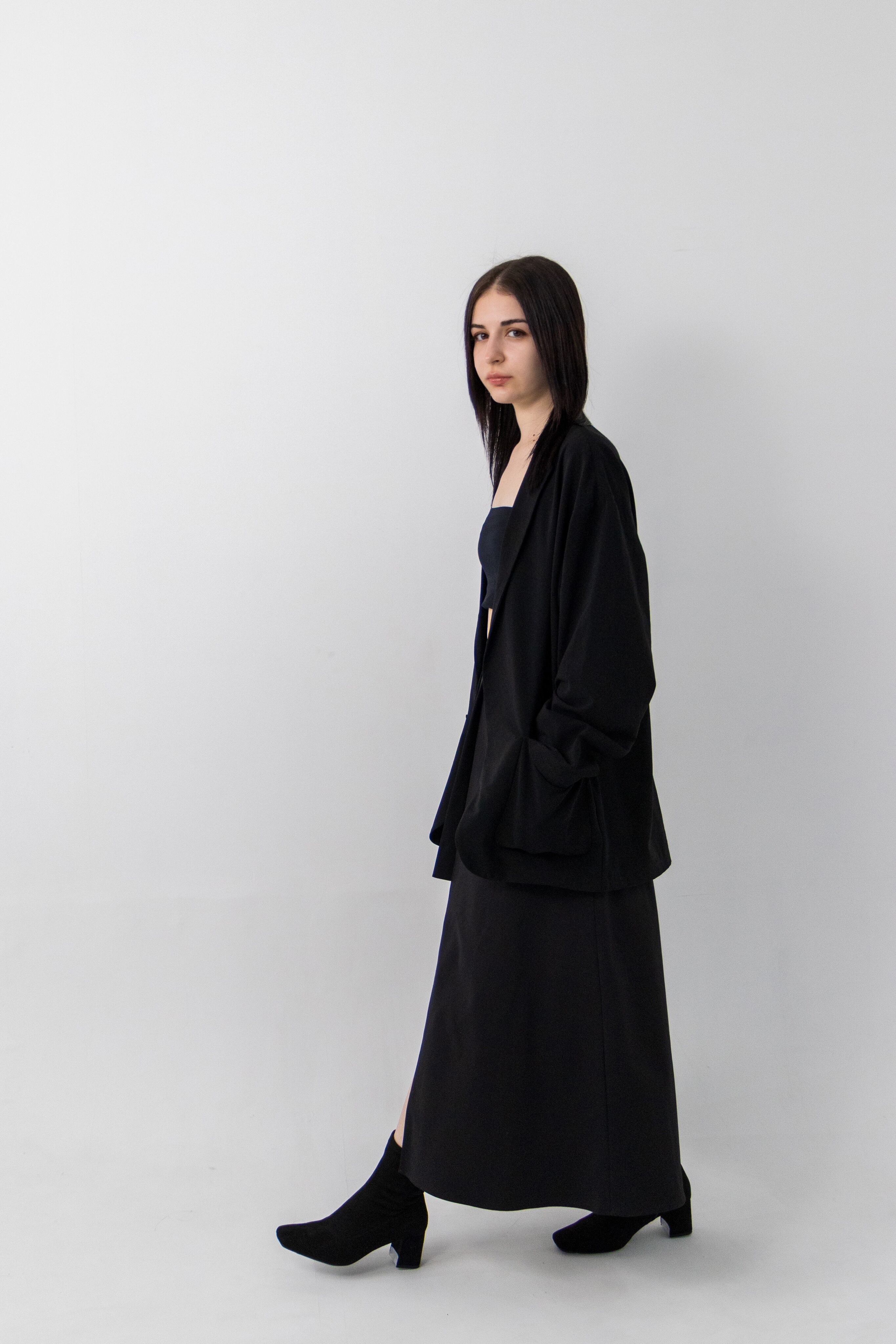 スタイリングによってエレガント、フェミニン、モードとテイストとともにスタイリングができる着回しがしやすいデザインのスカートです。